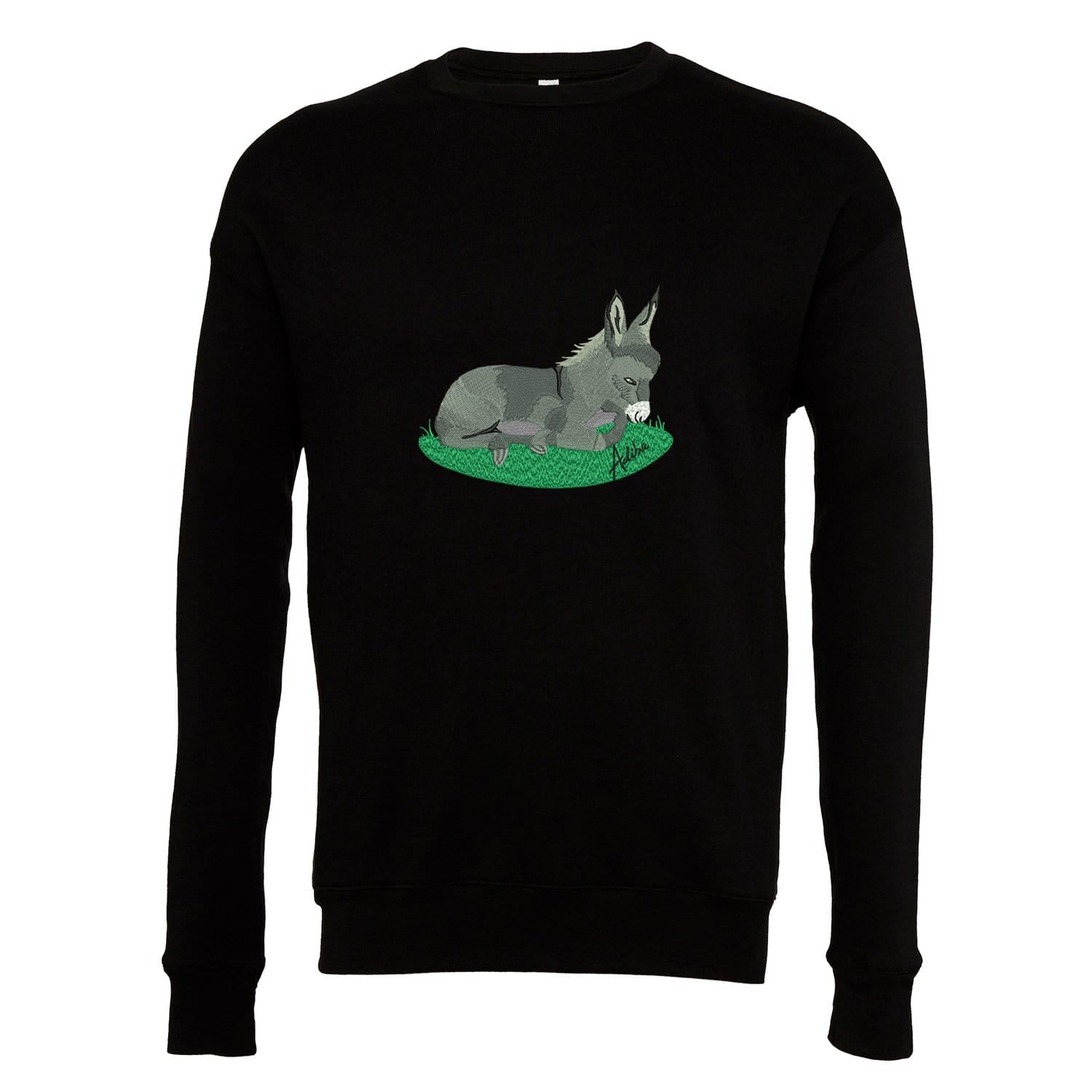 This Donkey Embroidered sweater is a classic crewneck sweatshirt in comfy, super-soft fleece designed for warmth and breathability. Featuring an on-trend drop-shoulder seam and finished with ribbed cuffs and waistband. Donkeys are brave, courageous and intelligent animals. They have an immense amount of strength, two times as much as of an average horse.