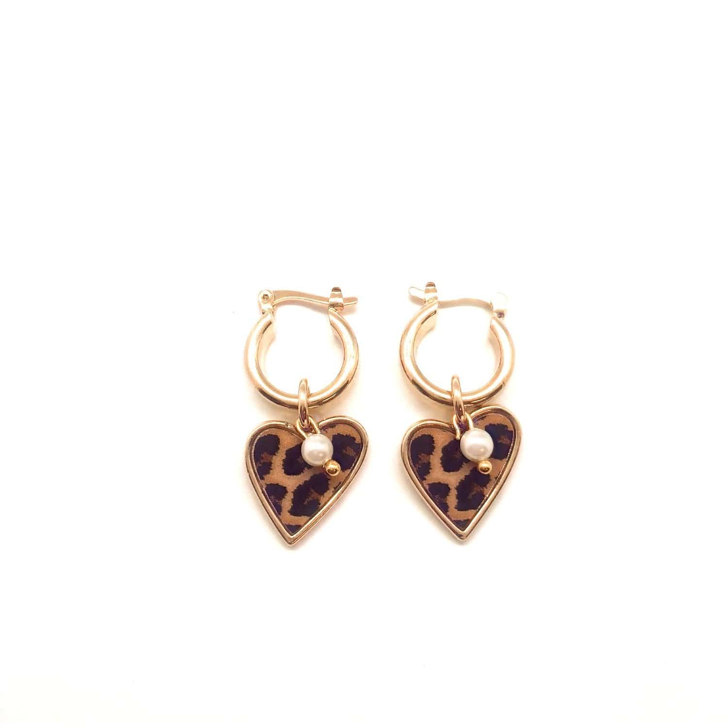 Handmade 18k Gold Filled Hoop earring featuring 18k Gold Filled beautiful cheetah heart and a precious fresh pearl. The earring is leverback, nickel and lead free.
