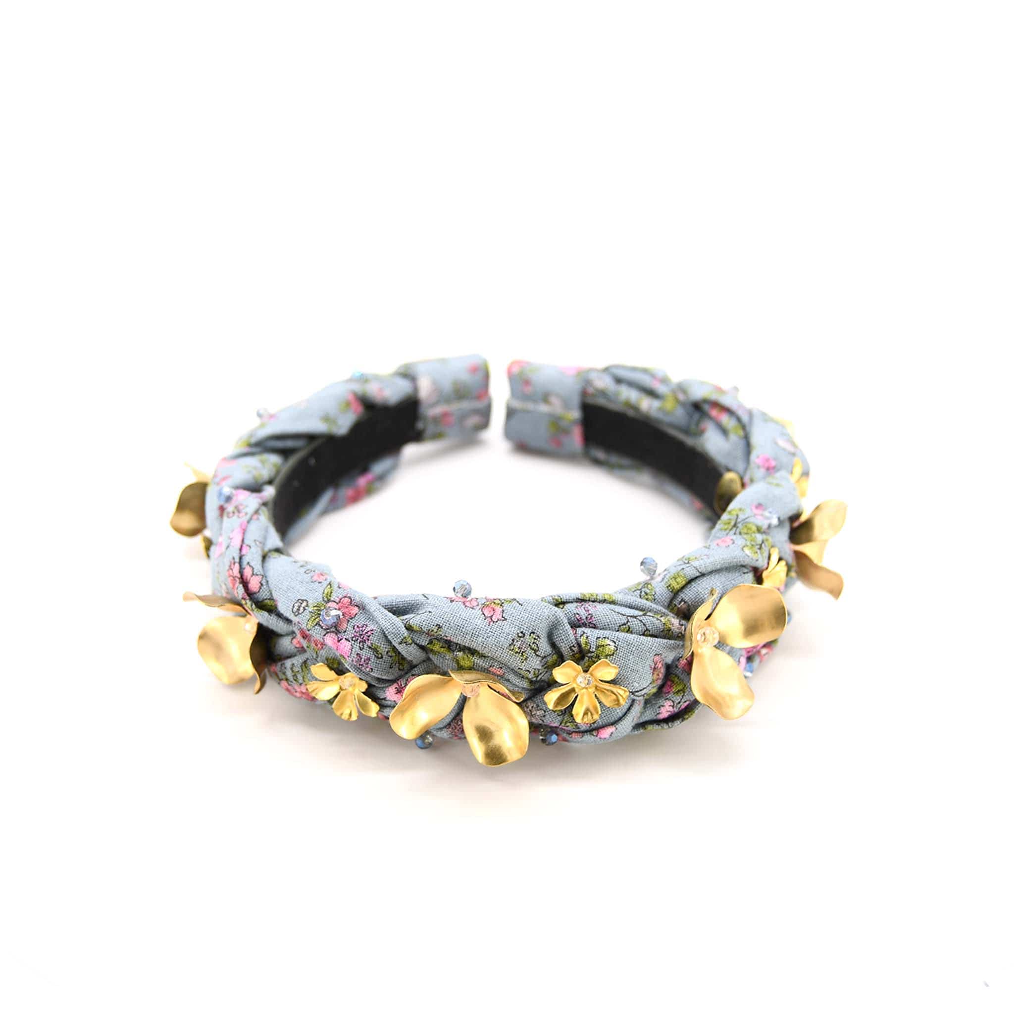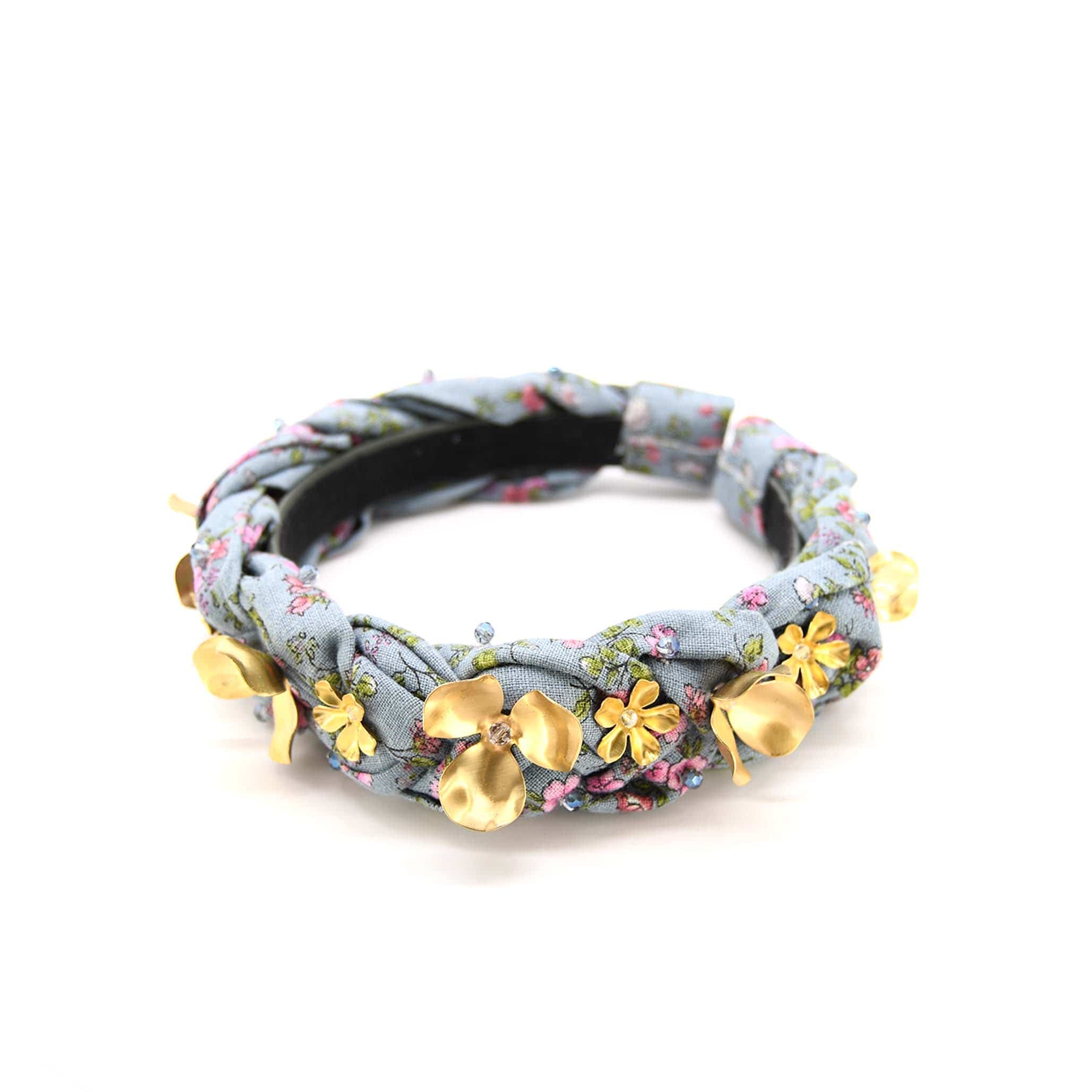 Empire Blue Floral Headband inspired by the beauty of Empire Blue flowers which symbolize hope and beauty of things. Empire Blue Floral Headband is handmade with beautiful floral braided cotton fabric featuring beautiful gold plated brass embellishments and crystals.