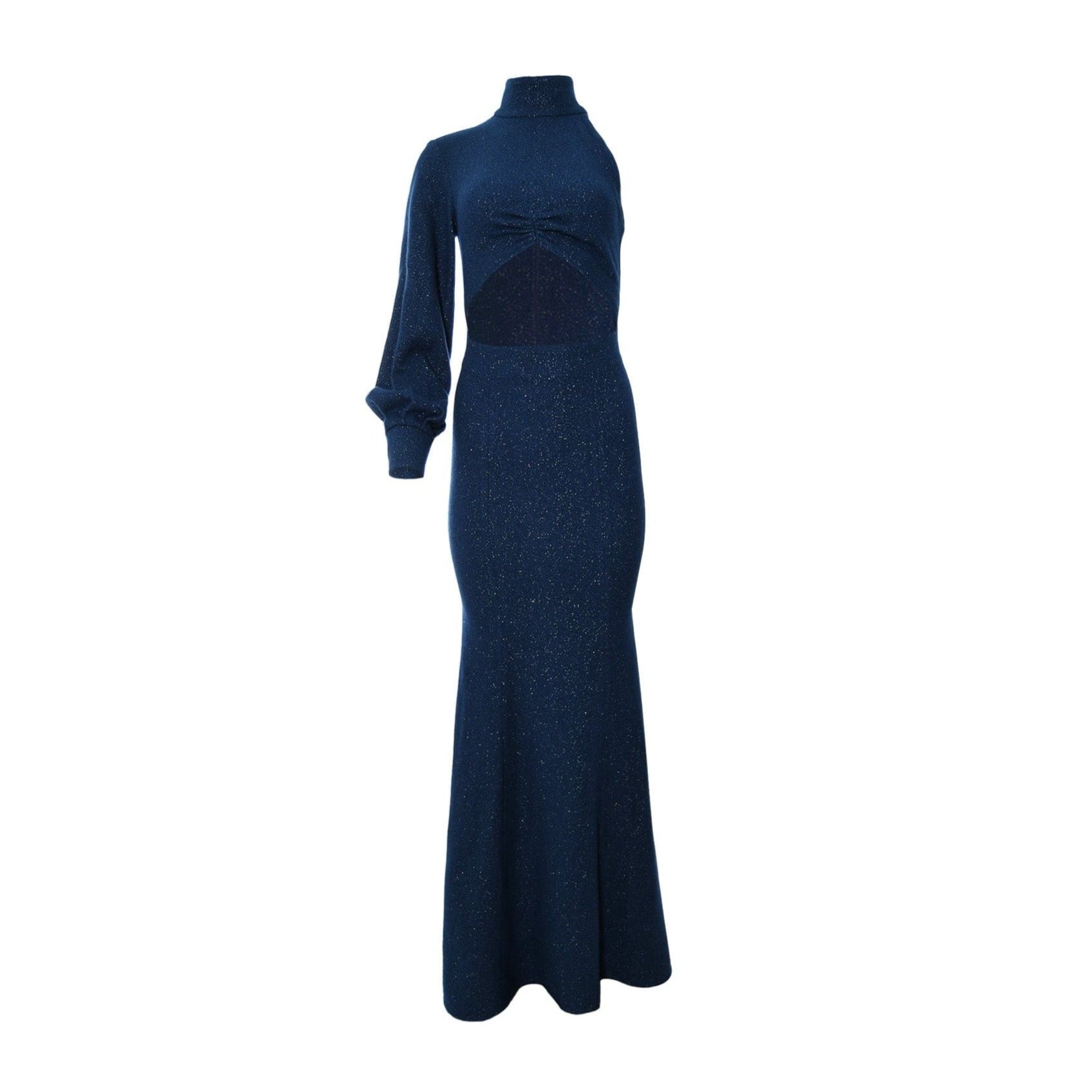 This Galaxy Tweed Cropped Top is crafted with a fitted style, high neck, one shoulder dress, and an exceptional navy blue fabric inspired by the stars in the night sky. Finishing this look with a set of beautiful gold plated moon and stars buttons. Timeless and unique