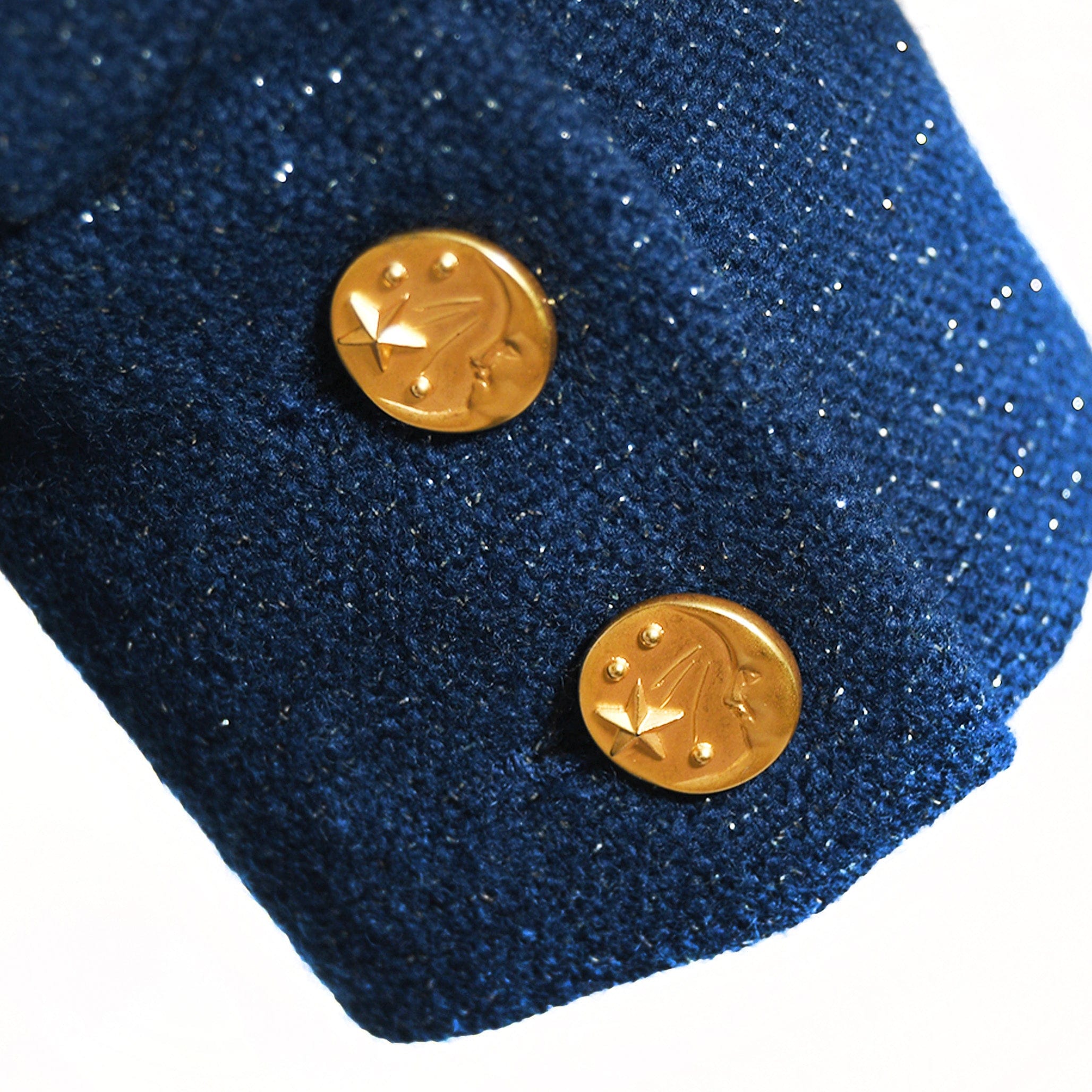 - 2 Gold plated functional buttons on sleeves with moon and stars motifs