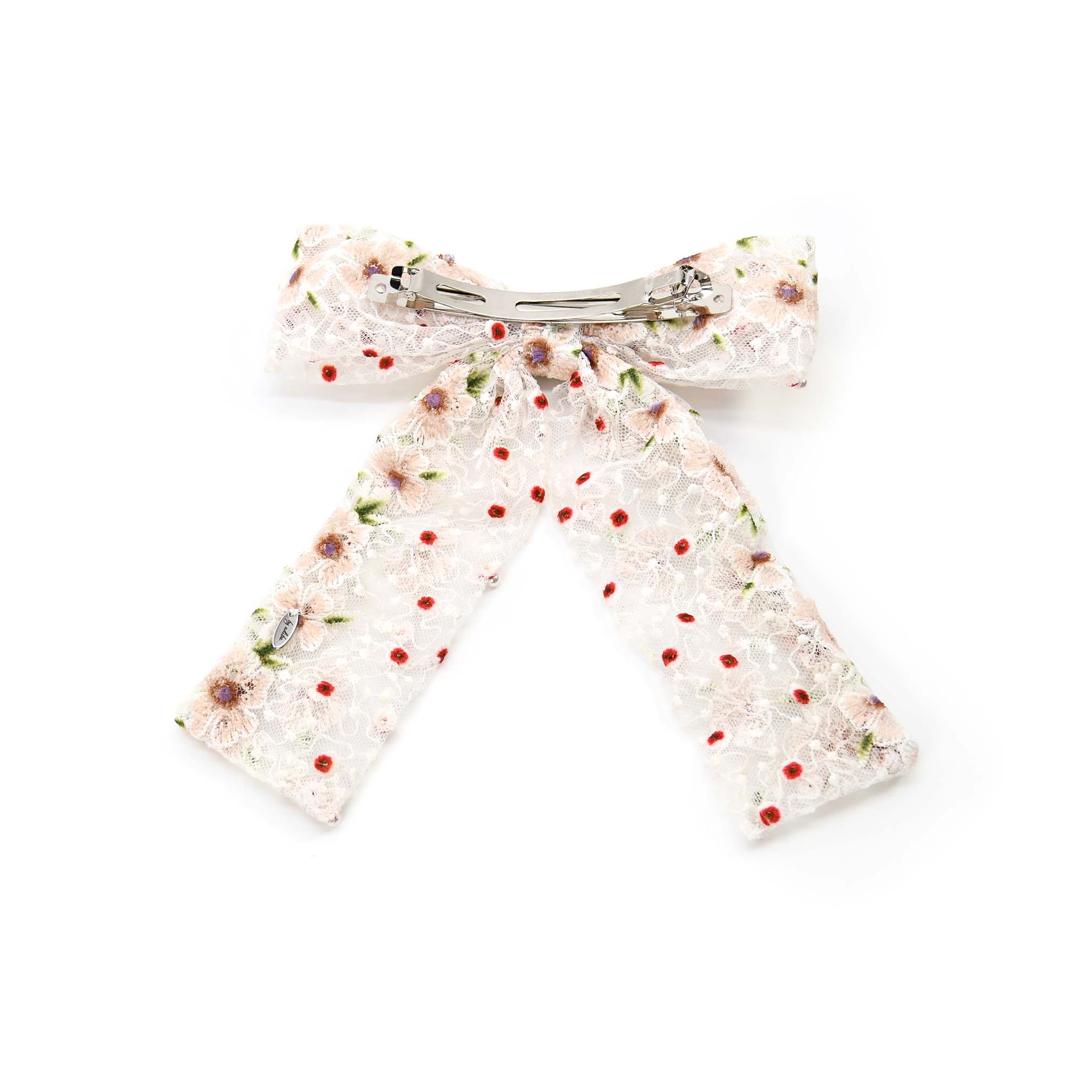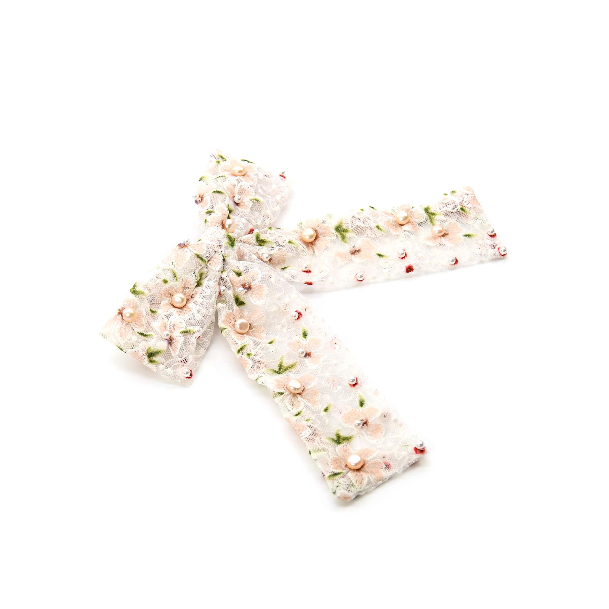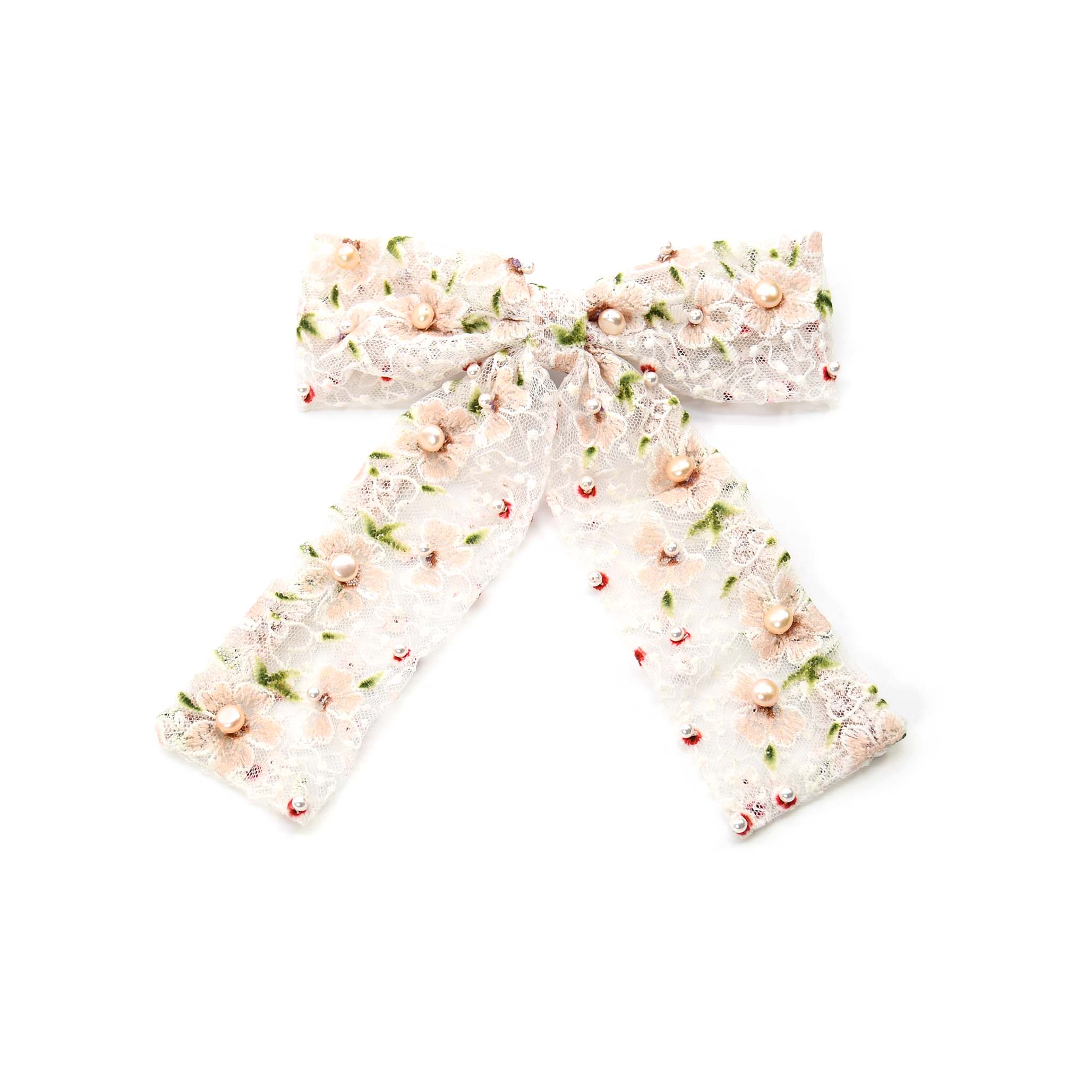 Garden of Eden Barrette is delicately hand-sewn with real fresh pearls on a beautiful embroidered floral fabric base with a silver steel French barrette clip.