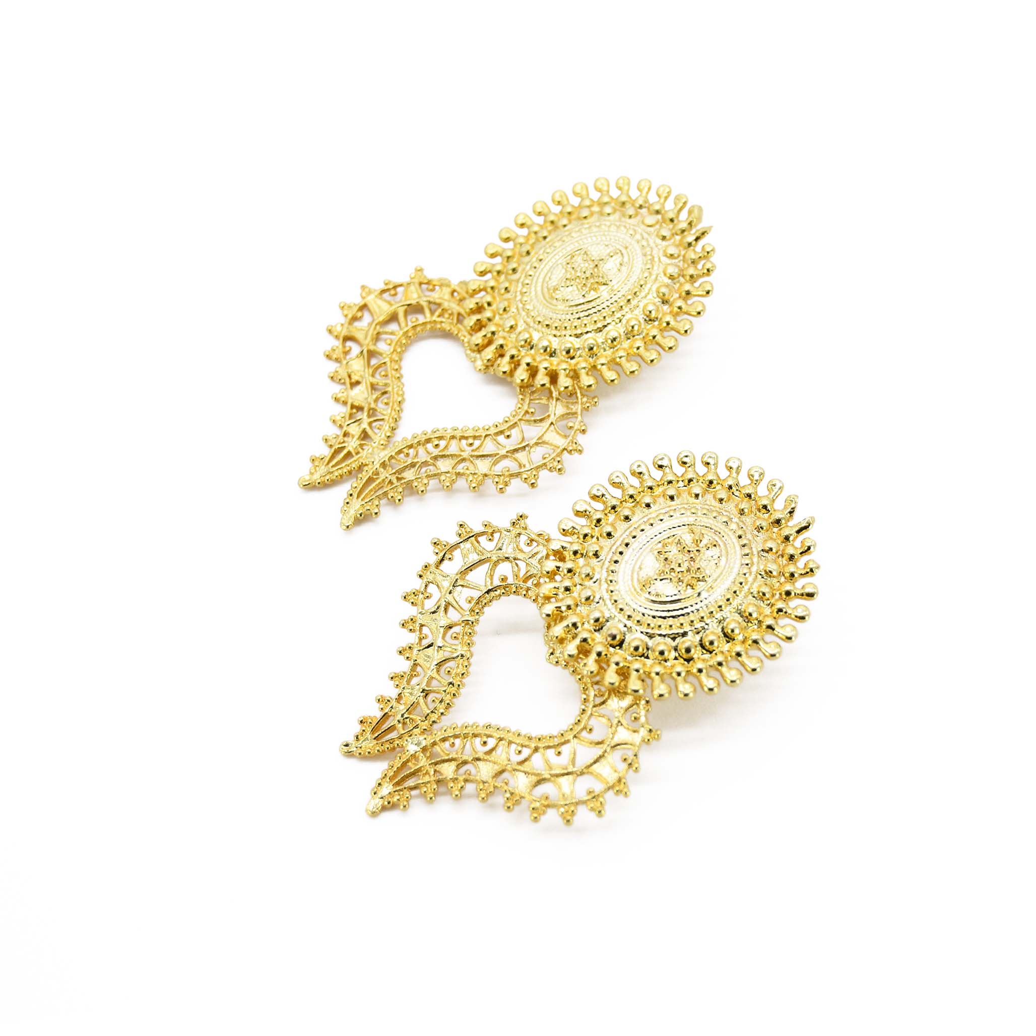 Lamprocapnos Earring is inspired by the Lamprocapnos flower which is heart shaped beautiful flower. It is handmade with 22k Gold Plated Brass and it is post back earring.