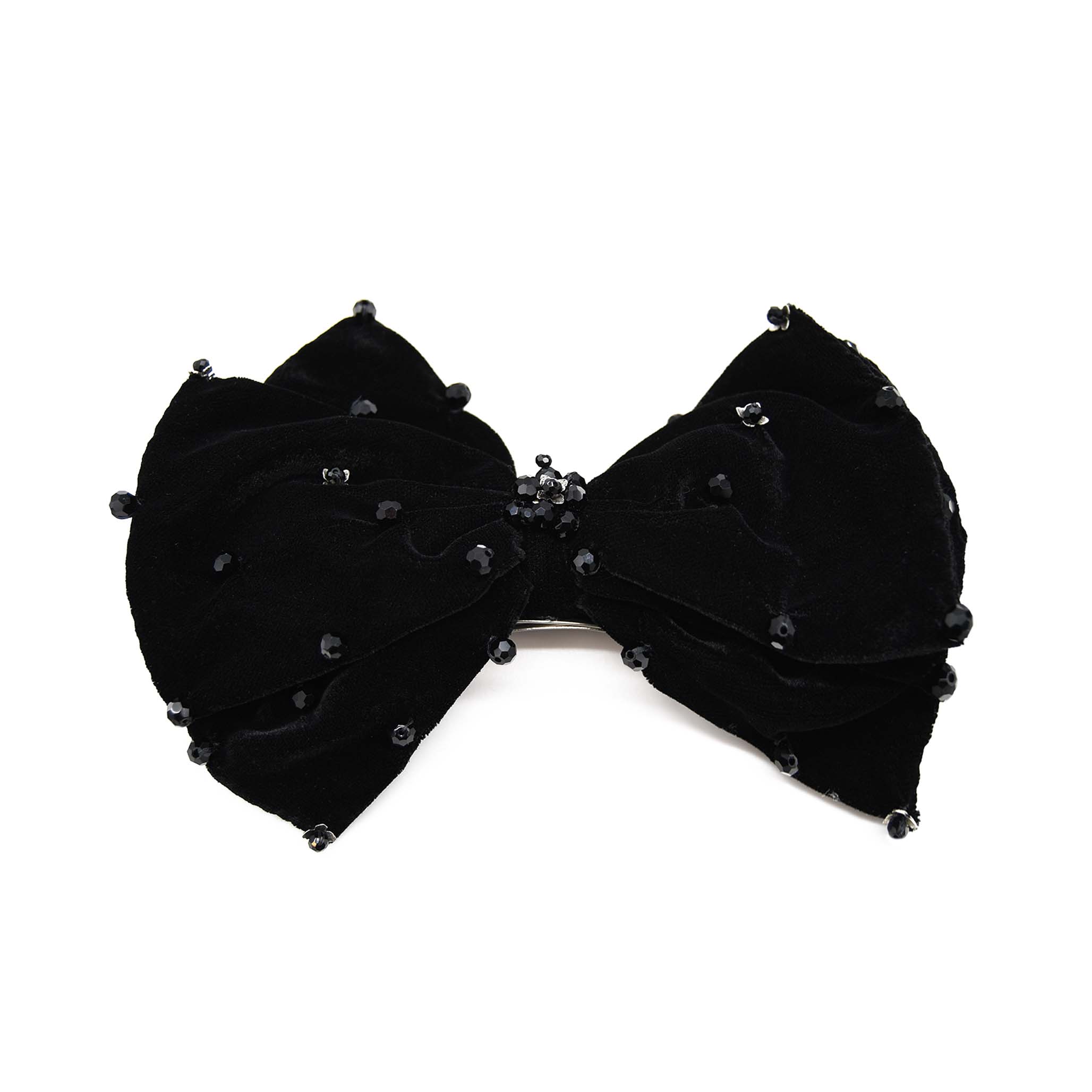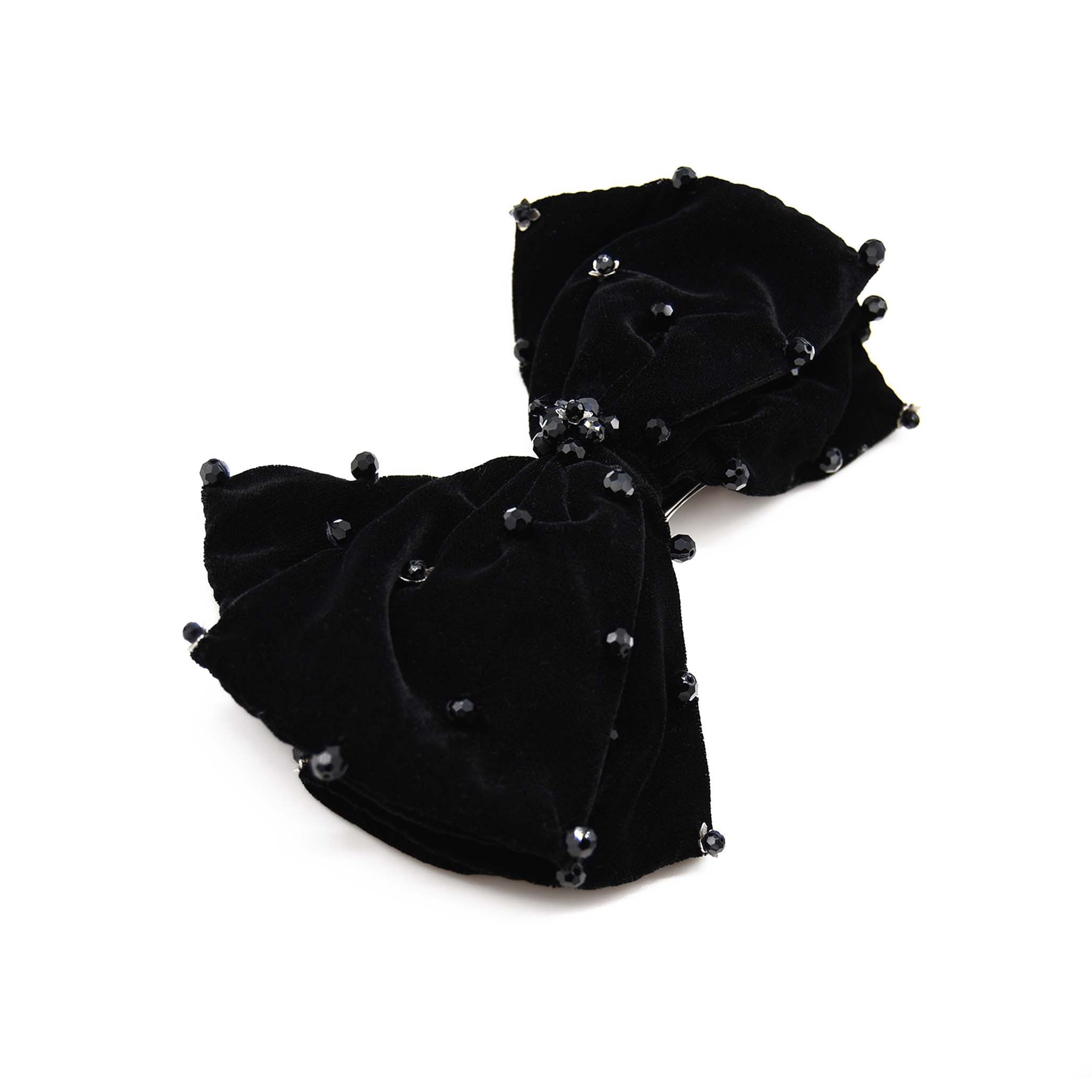 Top off your look with the black Lily barrette, it clips into your hair and gives you a glamorous look. Hand sewn beads and silver embellishments on a silk velvet material.