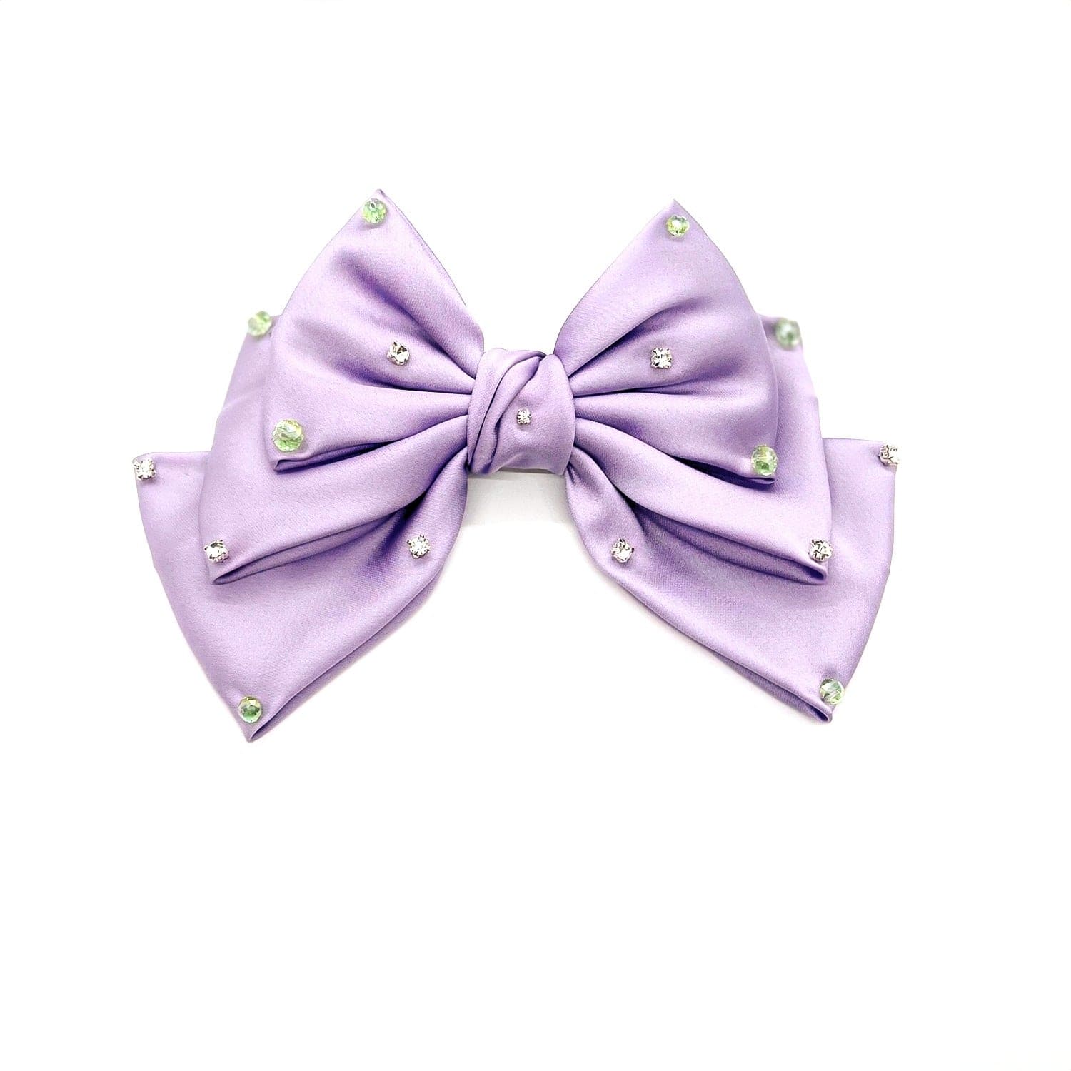 Periwinkle Barrette is delicately handmade with satin silky fabric and hand beaded with light green crystals and silver rhinestones finished with steel barrette clip. Periwinkle Barrette named after a flowering plant named Periwinkle, it symbolizes femininity, peacefulness and comfort.