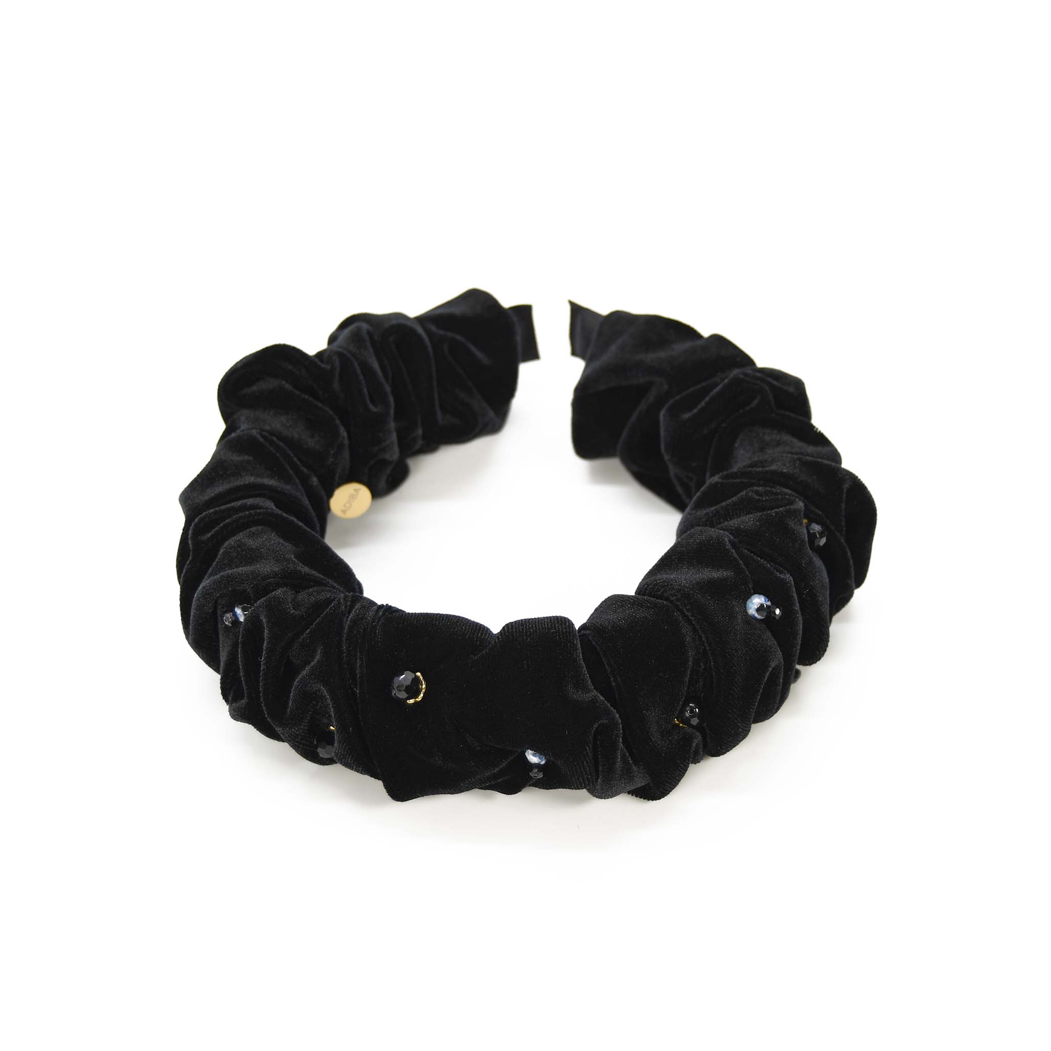 Adorne your head with this beautiful handmade Salvia Headband for this season. Hand sewn of Blue Firestone precious stones, black crystals and gold details. This headband is made of pleated velvet material and slightly chunky style to stand out.