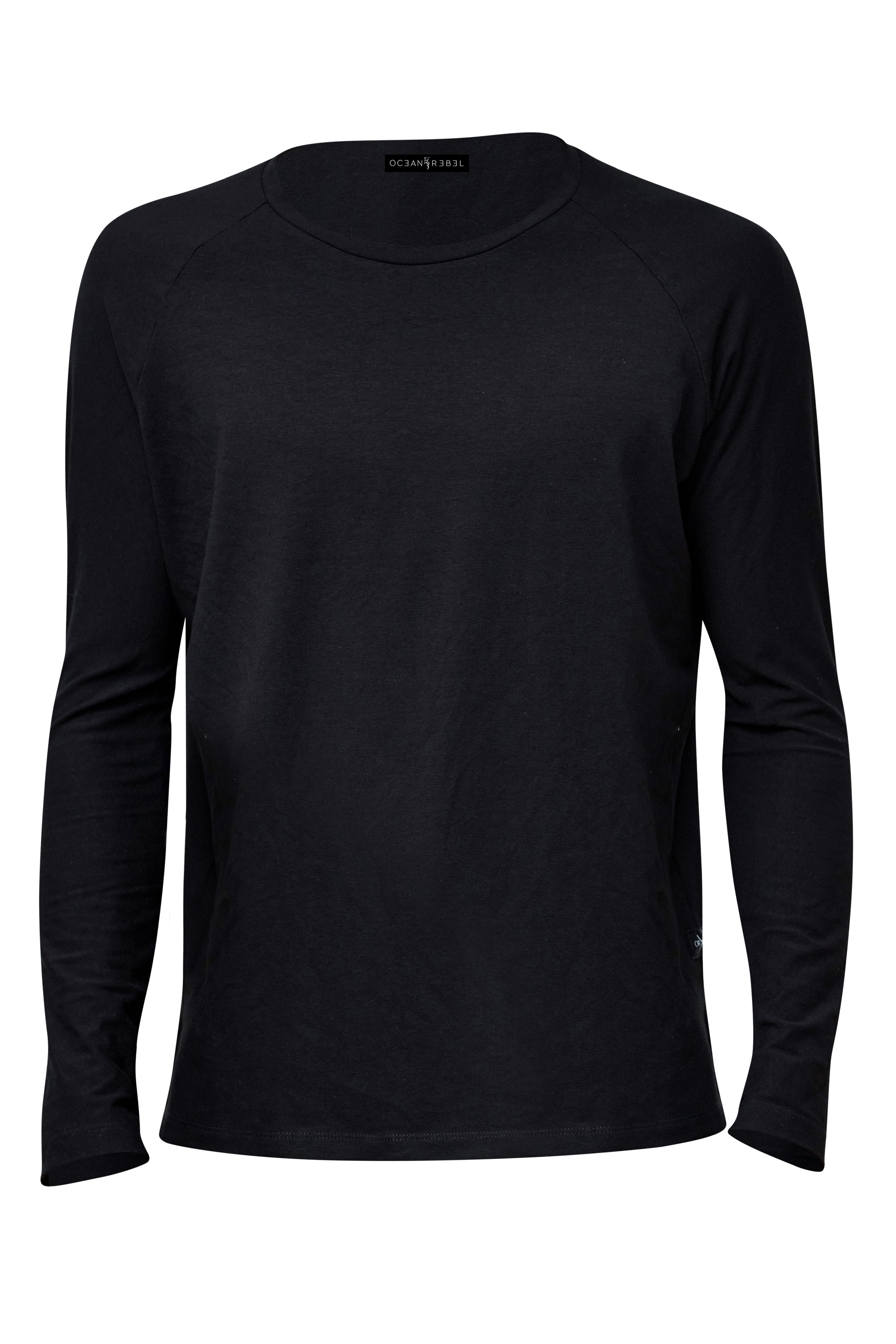 The side-slit comfort tee is constructed with raglan-inspired sleeves, fitted shoulder, and upper chest with a relaxed mid-body fit. The split hem provides a streetwear-inspired detail with a subtle classic look.