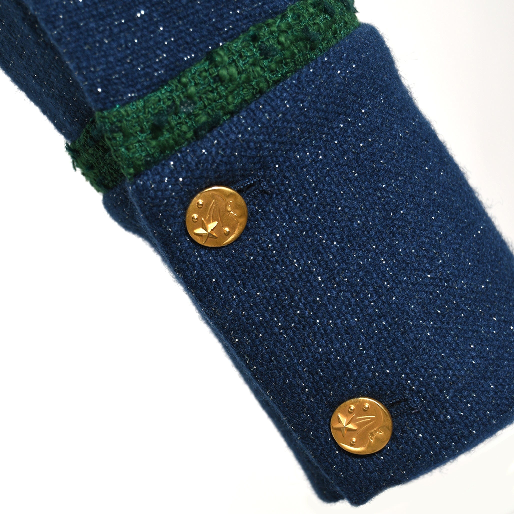 - 3 Gold plated functional buttons on the front and 2 functional buttons on sleeves with moon and stars motifs